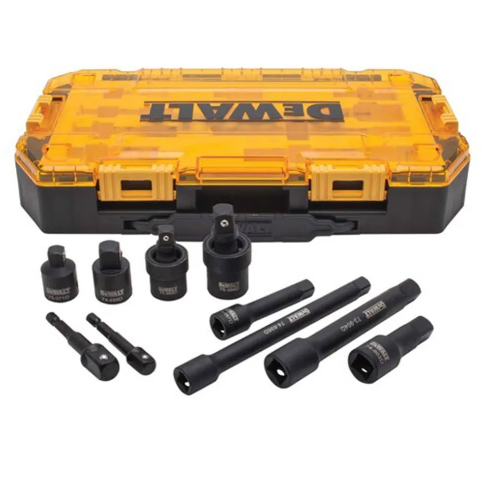 The DEWALT DWMT7474110 Piece Impact Accessory Socket Set offers a wide variety of accessories for any user need. This set is stored in a case that can be interlocked with others for increased portability.