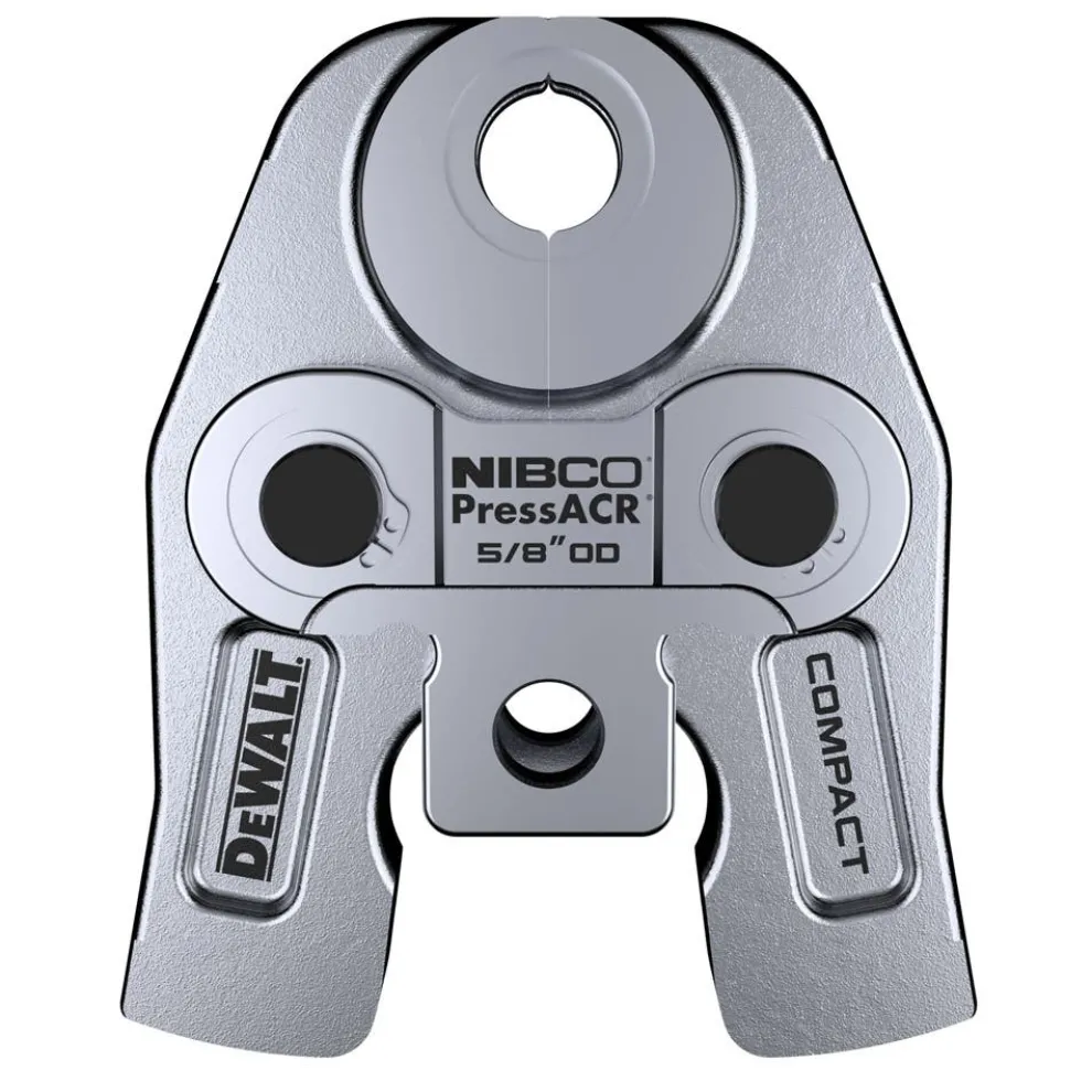 Create flameless refrigeration line connections with the DEWALT COMPACT PressACR Press Jaws, designed for use with the DEWALT Compact Press Tool, DCE210 (sold separately). The press attachments are designed for use on NIBCO’s PressACR refrigeration press fitting system. The jaws come in sizes from 1/4″ to 1-3/8″ (each sold separately) and are the first in the DEWALT refrigeration press jaw portfolio, expanding solutions available for HVACR and mechanical contractors. Each jaw in this lineup is manufactured to achieve optimal distribution of force while maintaining a high level of durability throughout the life of the product. The jaws feature a gray, galvanized coating to help defend against corrosion as well as easy actuation arms that allow for one-handed use. The full range of DEWALT PressACR jaws are designed and tested for NIBCO PressACR press fittings only.