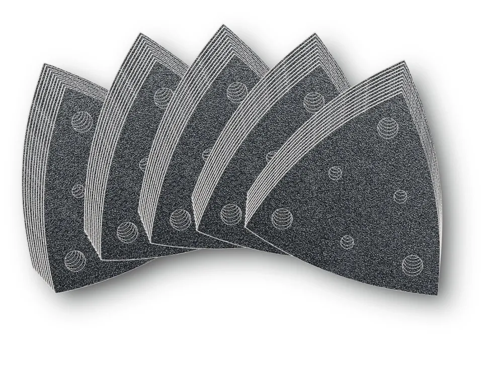 Assorted sanding sheet set|50 abrasive sheets in various grits for universal use from coarse to fine grinding on almost any material. Aluminum oxide and full resin bond guarantee fast material removal, minimum glazing and long tool life. Price includes: 10 of each type of sanding sheet (60, 80, 120, 180, 240 grit), perforated, for use with backing pad and dust extraction system, H&L attachment. Savings compared to individual purchase.