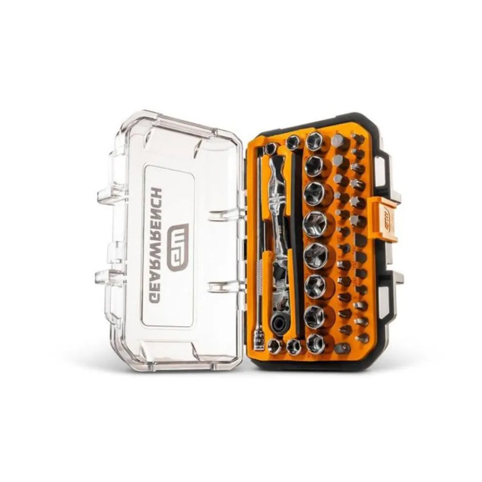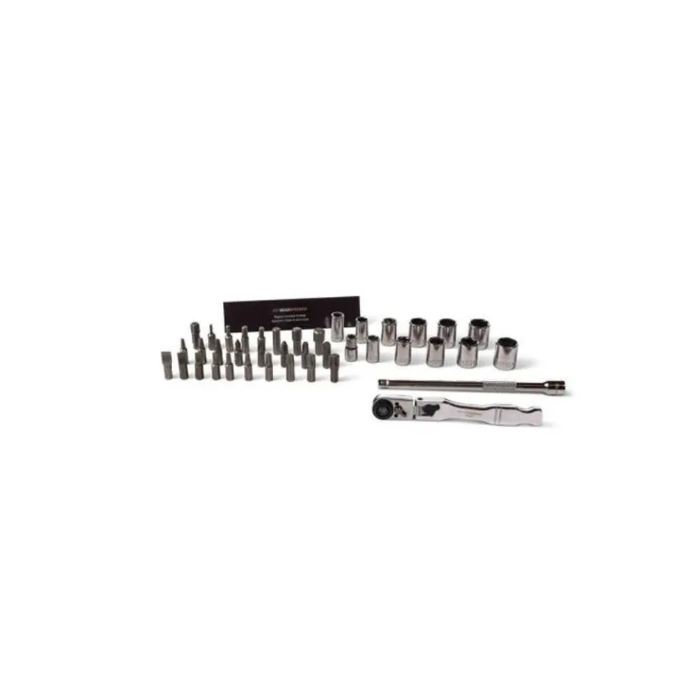 Size | 72T Ratchet, 2 Adapters, 6″ Extenstion, Magnetic StripSockets (SAE) 9/16”, 1/2”, 7/16”, 3/8”, 5/16”, 1/4″ (Metric) 14mm, 13mm, 12mm, 10mm, 8mm(Hex bits) 3/8”, 5/16”, 1/4”, 3/16”, 5/32”, 1/8”, 3/32”, (Torx bits) T50, T45, T40, T30, T25, T20(Phillips bits) PH4, PH3, PH2 x 2, PH1,(Slotted bits) 5/16”, 9/32”, 7/32”, 5/32”(Square bits) S3, S2, S1 |