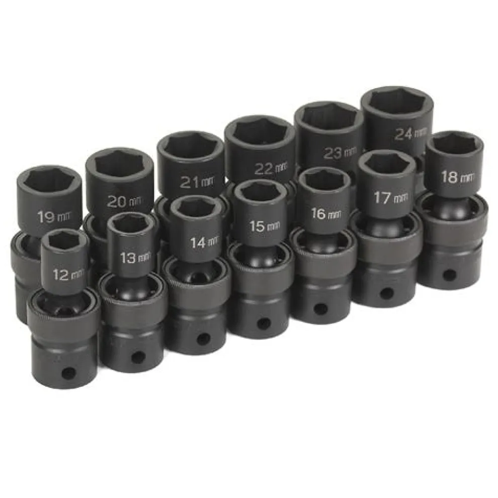 - 1/2″ Drive 13 Pc. Standard Length Metric Univ. Set