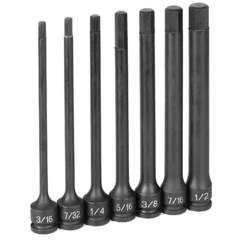 - 3/8″ Dr. 7 Pc. 6″ Length Fractional Hex Driver Set.