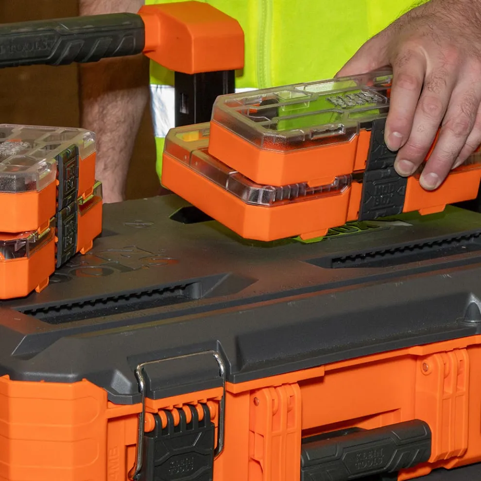 - Compact, modular storage system with a clear lid is compatible with MODbox and stackable with other cases of its similar design