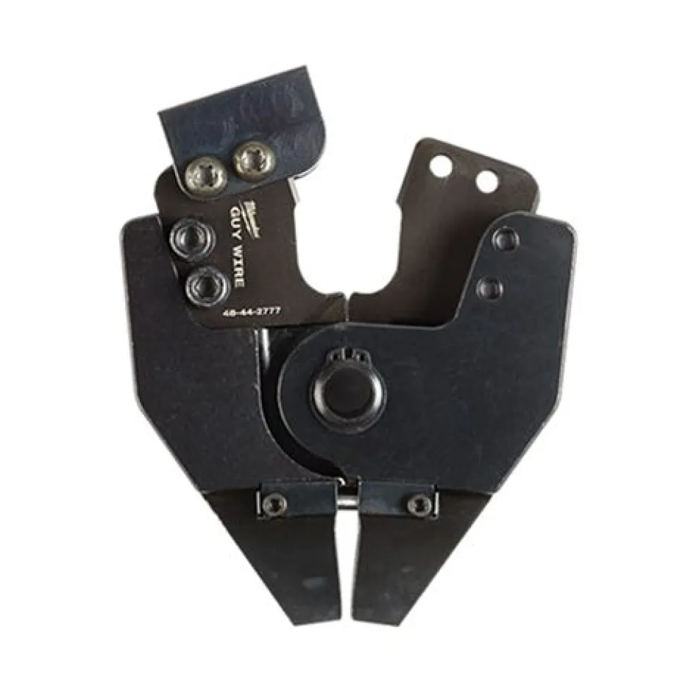 The Milwaukee 1/2 in. EHS guy wire cutting jaw provide the complete power utility distribution solution. The anti-spreading open jaw provides the power to cut through 1/2 in. EHS guy wire. Milwaukee delivers on its heavy duty promise making up to 500 cuts on a single set of blades. Use with the 2672-21S or 2672-21, M18 Force Logic 6T cable cutters or maximize your versatility by using it with the 2678-22, 2678-22BG, 2678-22O or 2678-22K, M18Force Logic 6T crimpers.