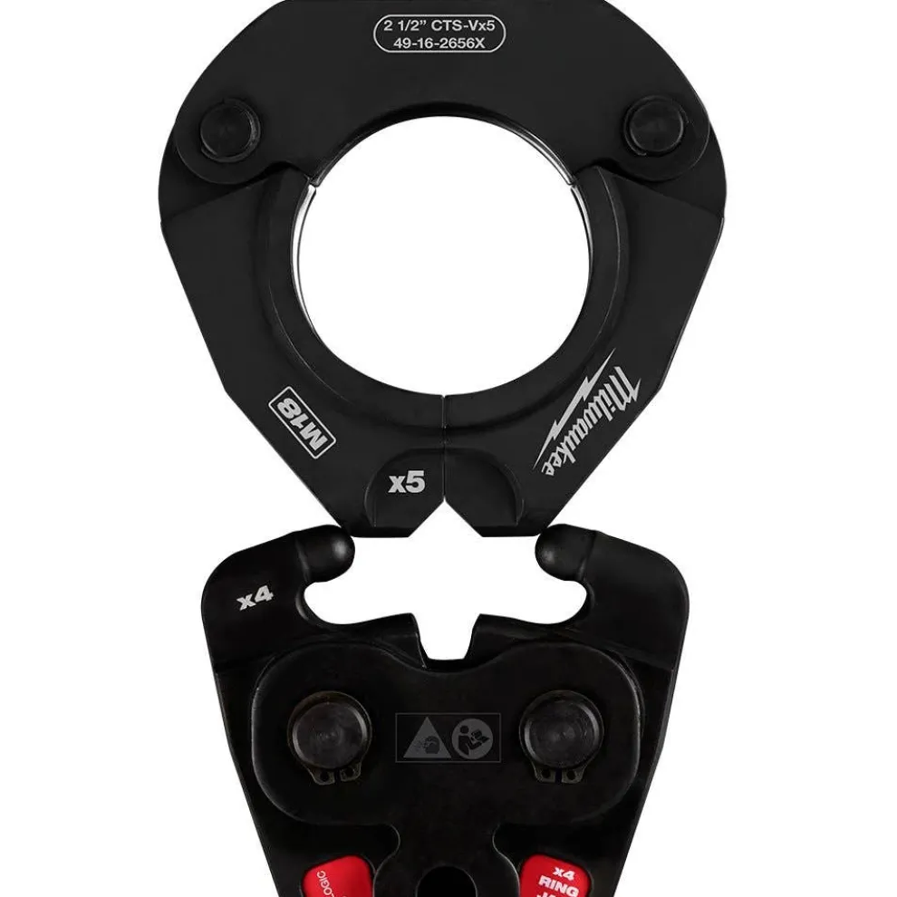 The MILWAUKEE 2-1/2″ CTS-V Pivoting Press Ring is designed for use with M18 FORCE LOGIC Press Tools. The 2-1/2″ CTS-V Pivoting Press Ring is a more efficient alternative to sweat and solder, enabling you to press connections on copper and copper tube-sized (CTS) stainless steel pipe. Pivoting functionality delivers greater access in tight spaces when paired with the X5 Ring Jaw & M18 FORCE LOGIC Press Tools. Additionally, Milwaukee’s press blocking system prevents improper ring and ring jaw mismatch providing peace of mind in quality connections. The 2-1/2″ CTS-V Pivoting Press Ring, combined with the ring jaw and in-line M18 FORCE LOGIC Press Tools, deliver unrivaled access in tight spaces and around installed pipes, providing you with controlled, flameless copper connections for unmatched productivity.