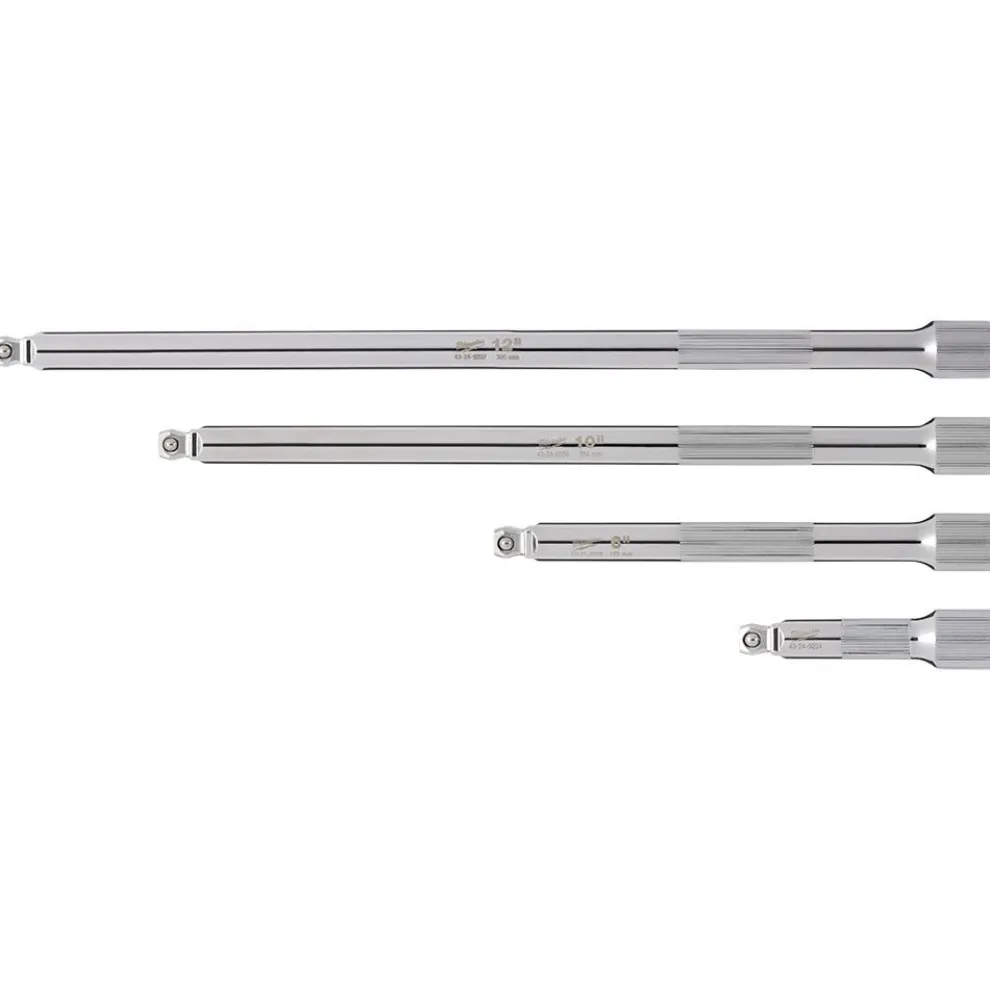 The MILWAUKEE 4PC 1/4″ Drive Wobble Extension Set offers the most control and better access in even the tightest spaces. The extensions feature the largest knurling surface on both the shaft and female drive end allowing precision control when hand-tightening fasteners or working with oily materials. The set includes a durable compact storage rack designed to optimize drawer space for long-term use. The male square end features a wobble design, providing up to 11 degrees of movement for better access at different angles and in tight spaces. The male end also provides added versatility by doubling as a standard or a wobble extension. The chrome plating on the extensions offers corrosion and rust protection. All Milwaukee Mechanics Hand Tools are backed by a lifetime guarantee.