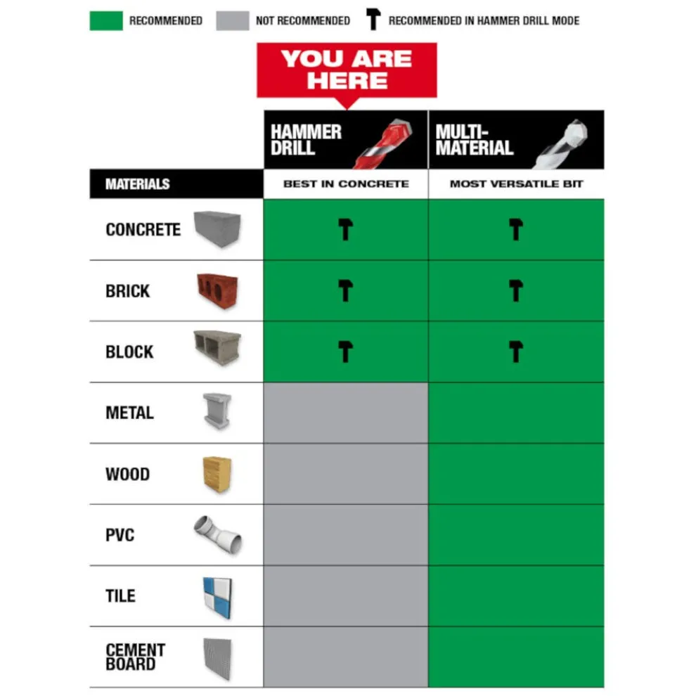 - For use in concrete, brick, and block