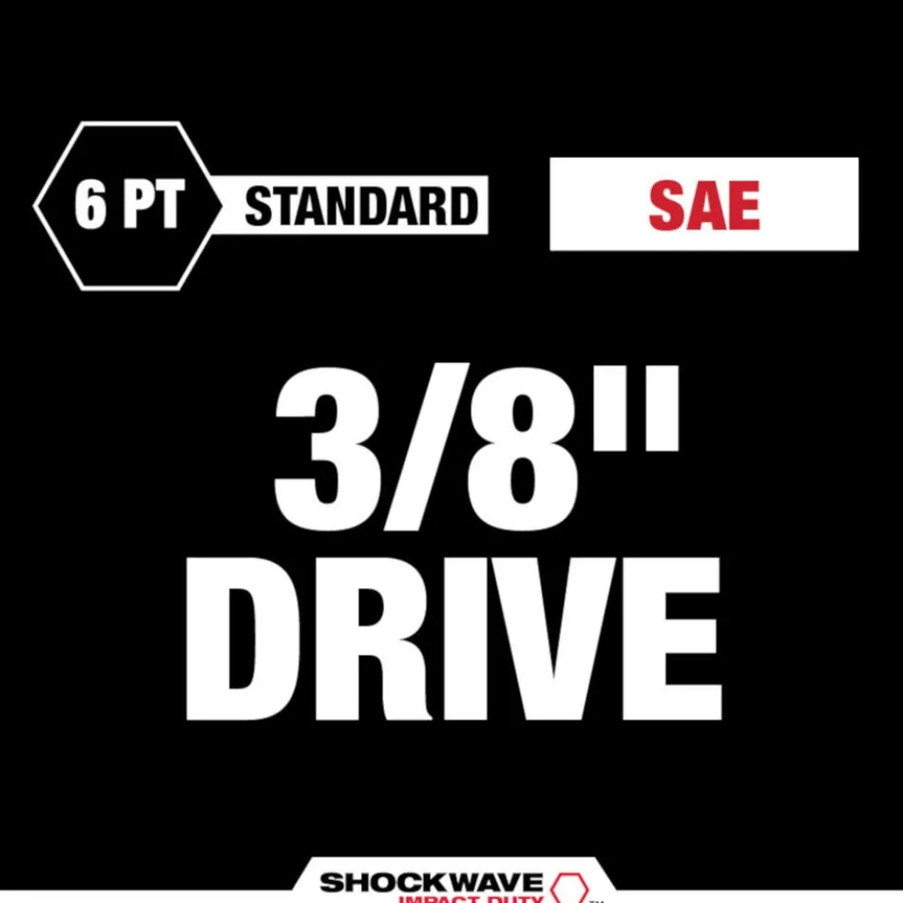 MILWAUKEE® 6-Piece SHOCKWAVE Impact Duty™ 3/8″ Drive SAE Standard Socket Sets feature the boldest, longest-lasting markings and extreme impact durability in high torque applications. The stamped and ink-filled size marking enables you to select the right Standard Socket every time throughout the life of the socket. Milwaukee sockets are engineered with high strength forged steel for optimized performance in heavy-duty applications. The non-slip hex geometry prevents fastener rounding, and a dual-hole design and ring groove allow for easy socket attachment and removal. All MILWAUKEE® SHOCKWAVE Impact Duty™ Sockets are backed by a Lifetime Guarantee and meet ASME industry standards.