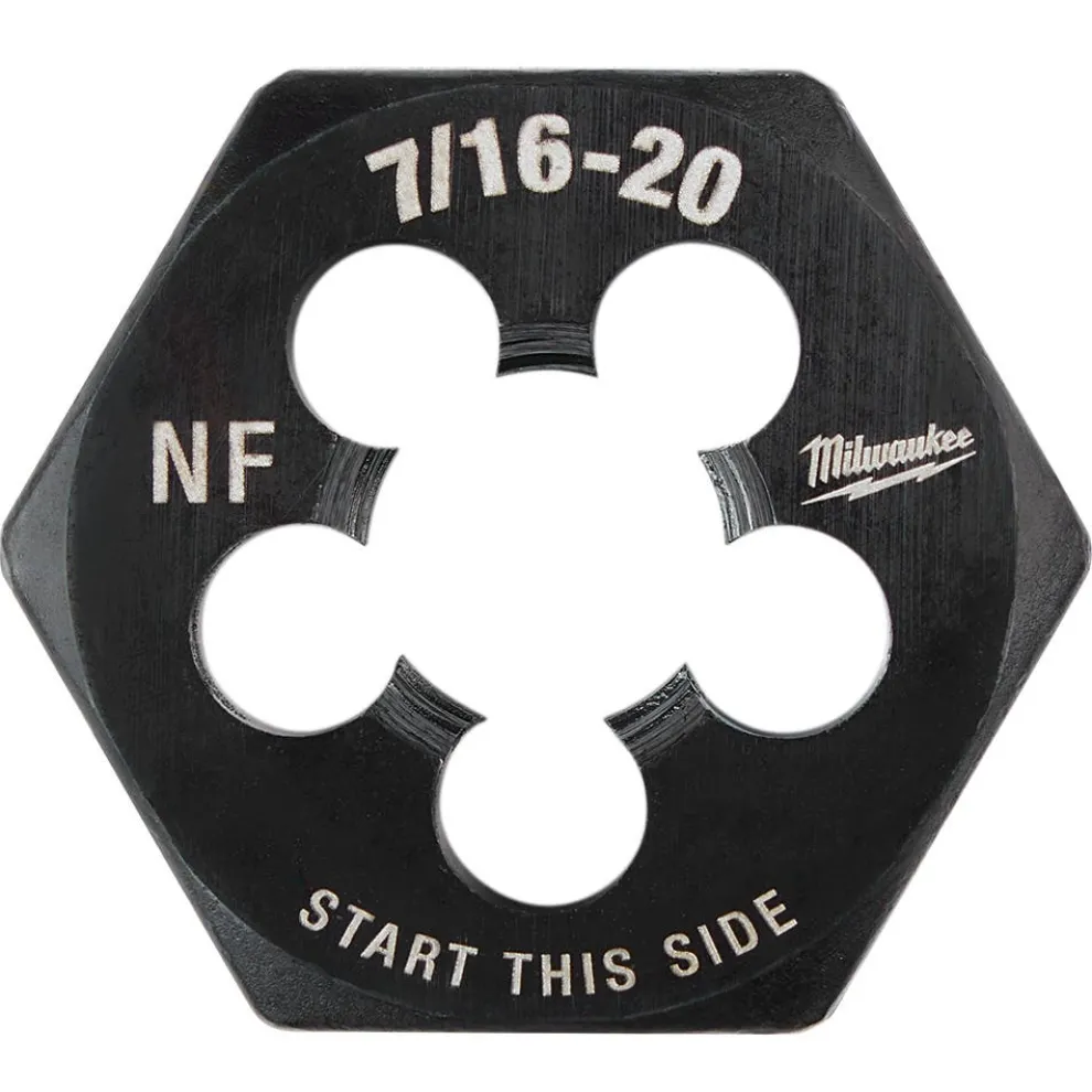 The MILWAUKEE® 1-7/16” Hex Threading Dies are precision machined for creating or repairing clean, accurate (external) threads. The Hex Dies feature long-lasting laser-etched sizing for the clearest markings and include a protective Black Oxide coating for corrosion resistance. The large 1-7/16” Hex shape is compatible with 1-7/16” Die stocks or for use with wrenches. Engineered for durability, the MILWAUKEE® 1-7/16” Hex Dies are designed for cutting threads in the most common metal applications including brass, aluminum, mild steel, and more. For best results, use Hex Dies with cutting fluid.