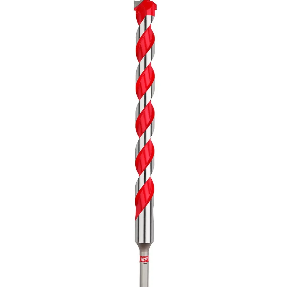 The MILWAUKEE Carbide Hammer Drill Bits are designed with sharpened carbide to deliver up to 9x longer life and 4x faster drilling into concrete. The POWER TIP, available in sizes 3/8″ and above, is designed with dynamic cutting edges and a chip breaker for increased productivity and easier drilling from start to finish. Engineered with precision ground carbide, these bits deliver faster starts and less walking in concrete, brick, and block. Wide flute design removes dust faster, reducing heat and delivering more holes per charge. Equipped with a 3-Flat Secure Grip shank, Milwaukee Carbide Hammer Drill Bits are the ideal solution for drilling in masonry materials with hammer drills/drivers. Available in diameters up to 1 inch.