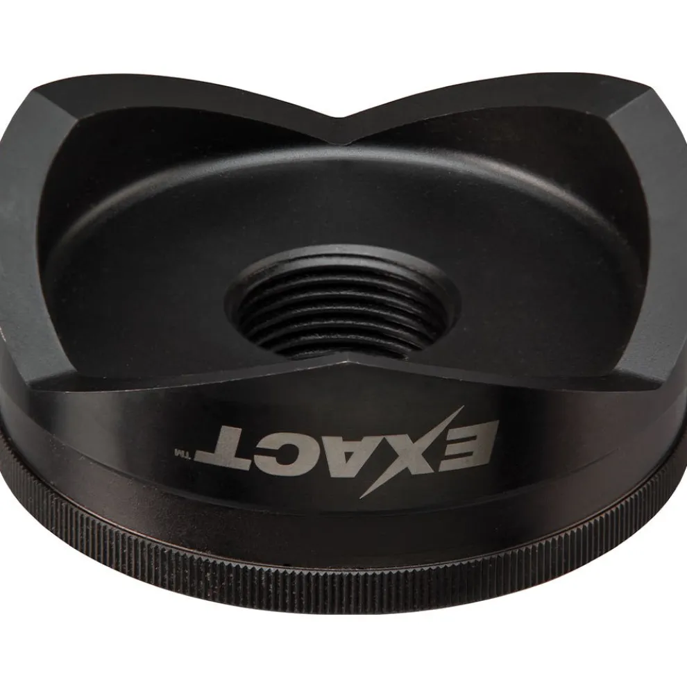 EXACT punches and dies have innovative features which bring value for the contractor. Heavy duty, they can punch holes in both mild and stainless steel material. Laser engraved cross hairs on the dies deliver clearest alignment with pre-drawn cross hairs. Both the tooth geometry of the punches, and slug removal ports on the dies, provide optimal slug removal. Large size ID markings on both the punches and dies permit easy punch and die selection. EXACT punches and dies do not require spacers. Finally, notches on the punches allow for better grip during punch threading and de-threading. Altogether, EXACT punches and dies make the knockout process easier!