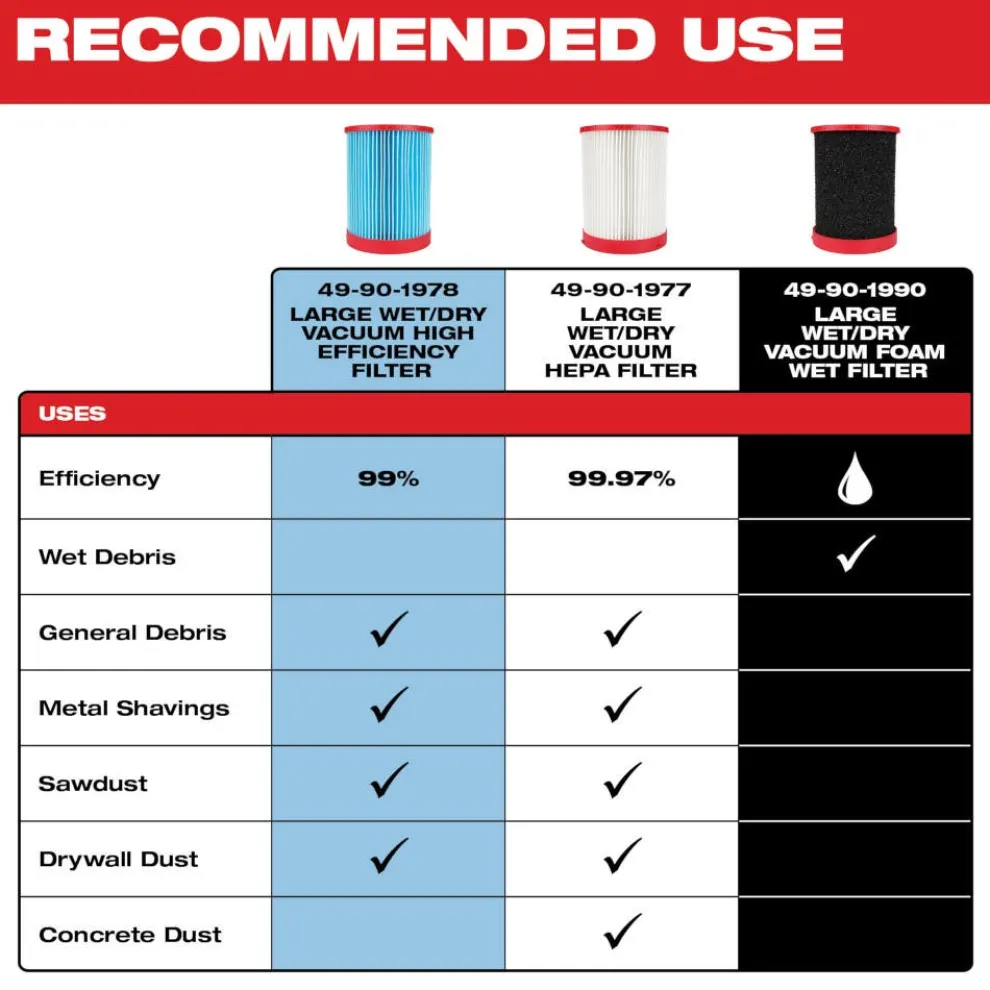 - Includes: 1 Large Wet/Dry Vacuum Foam Wet Filter
