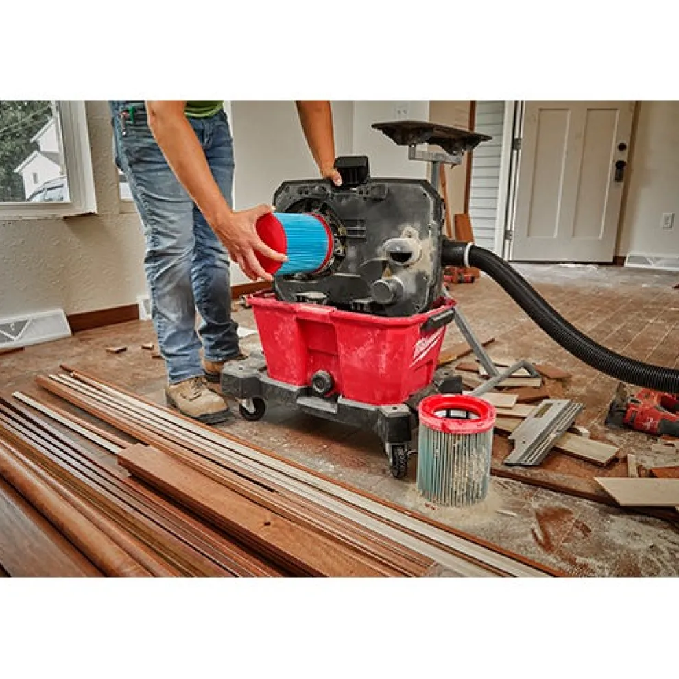 The MILWAUKEE Large Wet/Dry Vacuum High-Efficiency Filter is compatible with multiple Milwaukee Wet/Dry Vacuums (0910, 0920, 0930, 0931). An installed High-Efficiency Filter captures 99% of all particles greater than 0.5 microns for fine dust collection, ensuring dust and microparticle collection of debris such as sawdust, drywall dust, and wood/metal shavings. Quickly swap or clean filters with the easy access quarter-turn design. The Milwaukee Large Wet/Dry Vacuum High-Efficiency Filter is dry cleanable and washable with water when necessary. This product contains (1) High-Efficiency Filter.