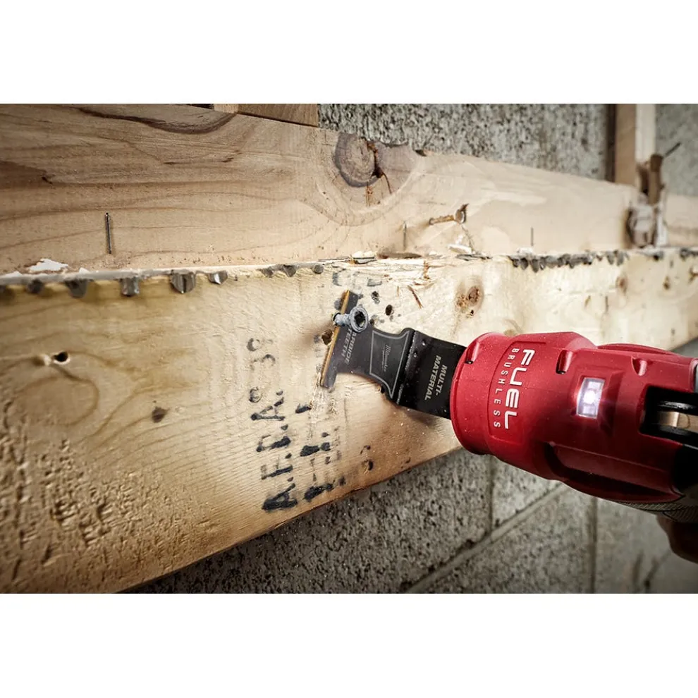 The MILWAUKEE OPEN-LOK 1-3/8″ Carbide Teeth Multi-Material Oscillating Multi-Tool Blades have a unique aggressive tooth design for cutting wood, screws, nails, cement board, plaster, and more. Carbide Teeth blades last up to 50X longer than standard bi-metal blades and can be used in a wide range of materials while maintaining longer blade life. The thin kerf design and aggressive Carbide Teeth offer faster cuts and better cutting performance in wood or wood with embedded fasteners. These blades feature a reinforced Universal Fit OPEN-LOK anchor for better strength & control and allow for quick blade changes across 100+ multi-tools. Not compatible with Starlock tools. Milwaukee oscillating multi-tool blades are designed and made in the USA with global materials.