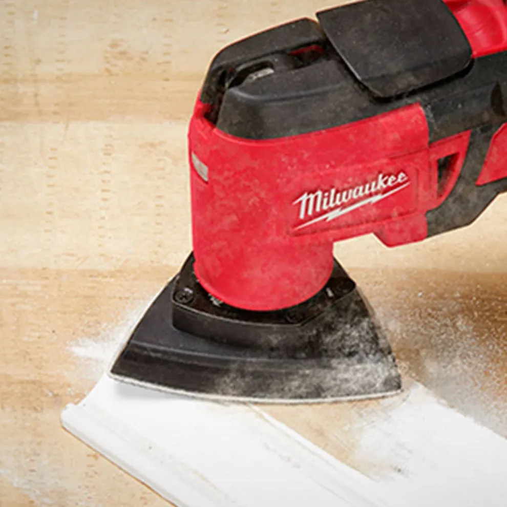 The MILWAUKEE Universal Fit OPEN-LOK 3-1/2″ Triangle Sanding Pad 1 Pack is for Oscillating Multi-Tools. The 3-1/2″ Triangle Sanding Pad utilizes hook and loop technology for fast and secure paper changes. The sanding pad uses a dense foam backer for flexibility and durability, delivering a longer pad life and a smooth sanding experience. This multi-tool sanding pad is ideal for detail sanding and hard to reach areas.
