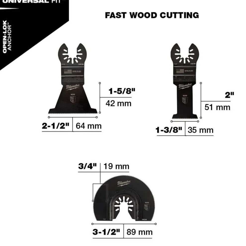 Package Contents | (1) 1-3/8″ HCS WOOD BLADE, (1) 2-1/2″ HCS WOOD BLADE, (1) 3-1/2″ HCS SEGMENTED WOOD BLADE |