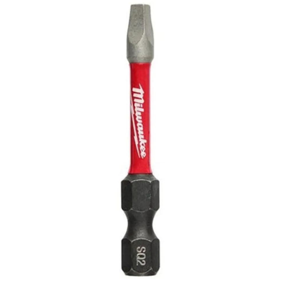 The MILWAUKEE SHOCKWAVE 2″ Square 2 Impact Duty Bit 2 Pack is engineered to be the most durable, best fitting driver bits on the market. The square bits feature Wear Guard Tip for increased wear resistance, which protects the fit over the life of the bit. The impact driver bits have an optimized Shockzone for each tip type and length of driver bit to absorb peak torque and prevent breaking. The Custom Alloy76 Steel is customized and heat treated per tip type to extend the life of the driver but by up to 50X vs. competitive impact driver bits. The MILWAUKEE SHOCKWAVE Impact Duty driver bits are built to deliver extreme durability for the most demanding applications.