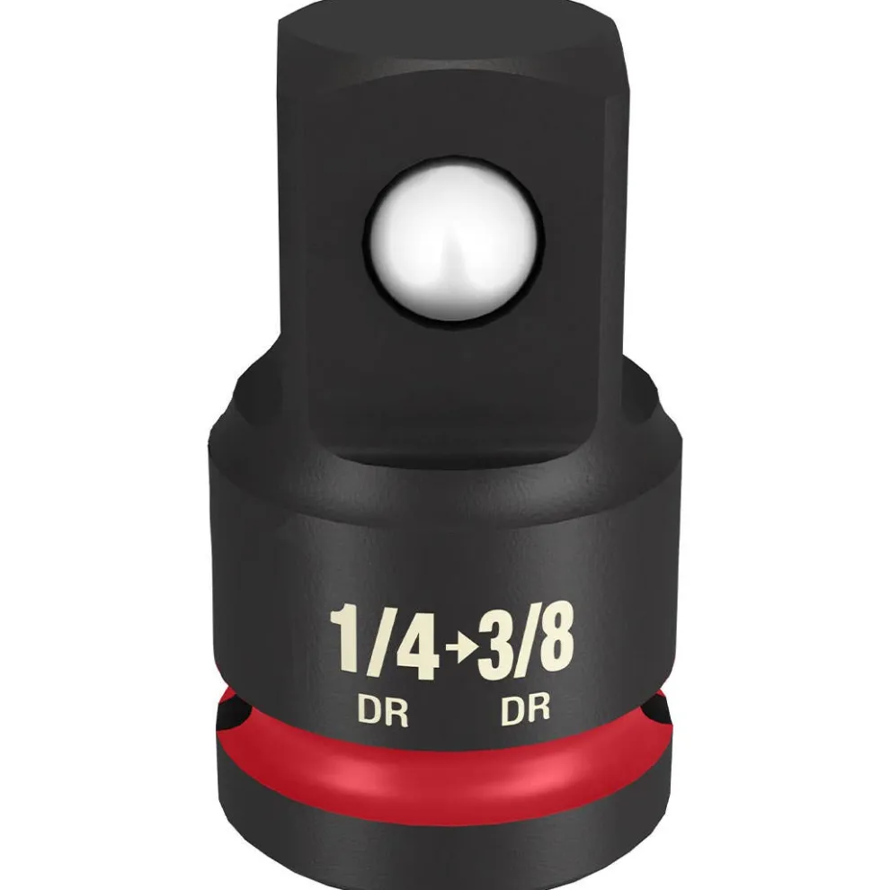 The MILWAUKEE SHOCKWAVE Impact Duty 1/4″ Drive to 3/8″ Drive Socket Adapter provides tool versatility and durability in high torque applications. This adapter converts 1/4″ drive tools to be used with 3/8″ drive impact sockets. Milwaukee engineered these adapters with forged steel for durability in high torque applications. The laser-etched size markings allow for easy size identification. The dual-hole design and ring groove make for easy adapter attachment and removal. All SHOCKWAVE Impact Duty Socket Adapters meet ASME industry standards.