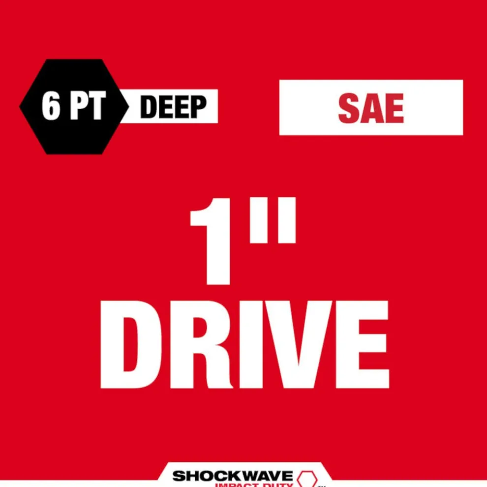 The MILWAUKEE SHOCKWAVE Impact Duty 1″ Drive 1-1/2″ Deep 6 Point Socket features the boldest, longest-lasting markings and extreme impact durability in high torque applications. The stamped and ink-filled size marking enables an accurate socket selection every time throughout the life of the socket. Engineered with high-strength forged steel for optimized performance in heavy-duty applications, and a non-slip hex geometry prevents fastener rounding. The dual-hole design and ring groove allow for easy socket attachment and removal. All SHOCKWAVE Impact Duty Sockets are backed by a Lifetime Guarantee and meet ASME industry standards. Compatible with optional Retaining Ring (49-66-6745).