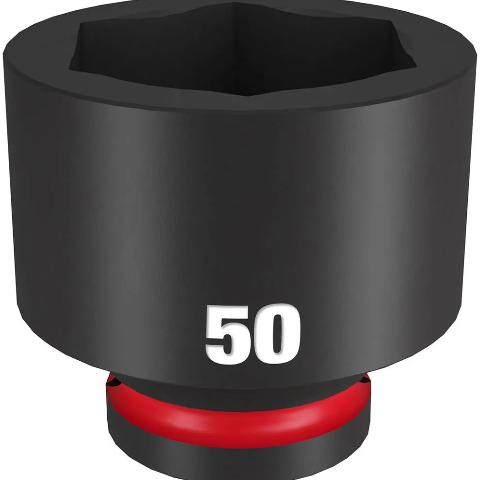 The MILWAUKEE SHOCKWAVE Impact Duty 3/4″ Drive 50MM Standard 6 Point Socket features the boldest, longest-lasting markings and extreme impact durability in high torque applications. The stamped and ink-filled size marking enables an accurate socket selection every time throughout the life of the socket. Engineered with high-strength forged steel for optimized performance in heavy-duty applications, and a non-slip hex geometry prevents fastener rounding. The dual-hole design and ring groove allow for easy socket attachment and removal. All SHOCKWAVE Impact Duty Sockets are backed by a Lifetime Guarantee and meet ASME industry standards. Compatible with optional Retaining Ring (49-66-6744).