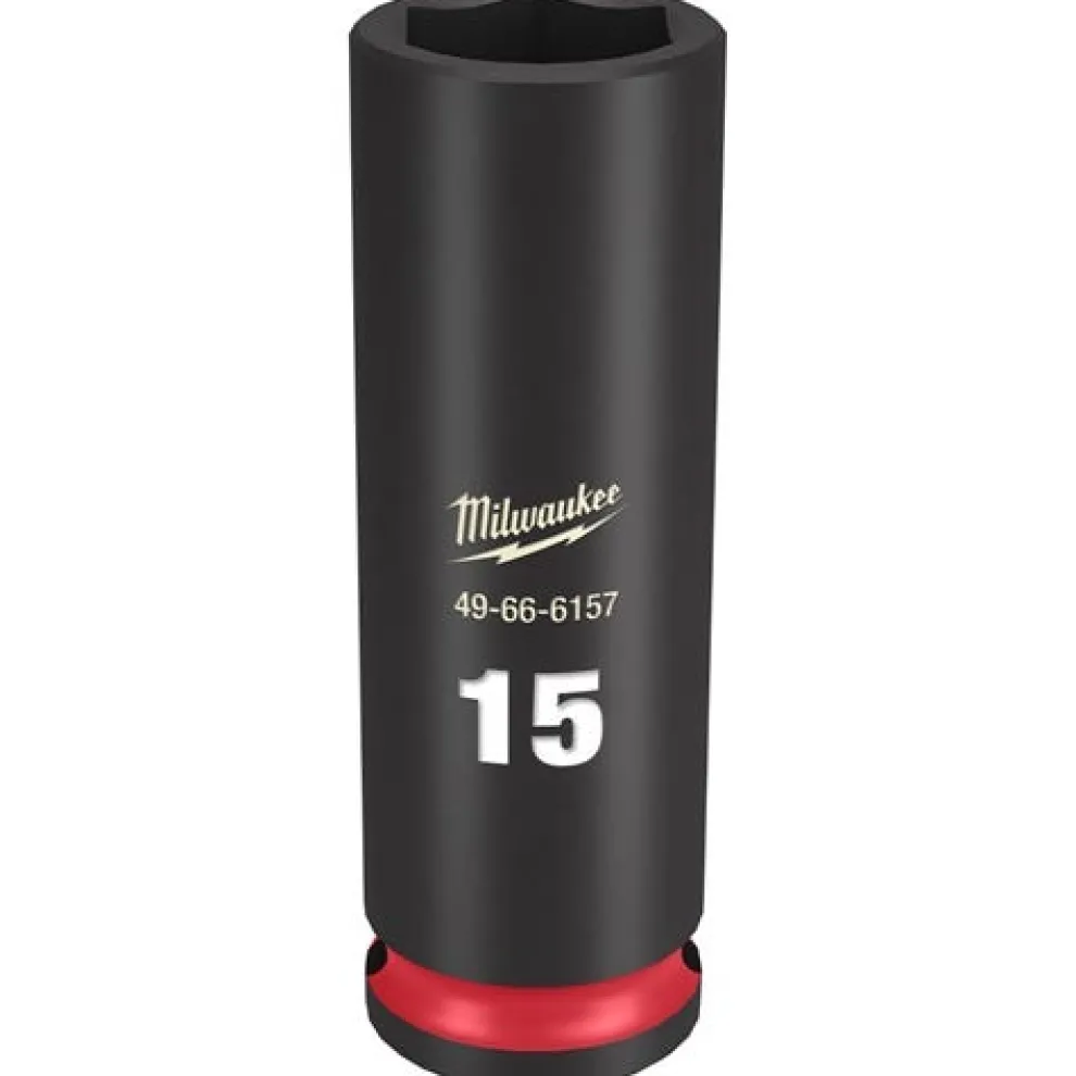 The MILWAUKEE SHOCKWAVE Impact Duty 3/8″ Drive 15MM Deep 6 Point Socket features the boldest, longest-lasting markings and extreme impact durability in high torque applications. The stamped and ink-filled size marking enables an accurate socket selection every time throughout the life of the socket. Engineered with high-strength forged steel for optimized performance in heavy-duty applications, and a non-slip hex geometry prevents fastener rounding. The dual-hole design and ring groove allow for easy socket attachment and removal. All SHOCKWAVE Impact Duty Sockets are backed by a Lifetime Guarantee and meet ASME industry standards.