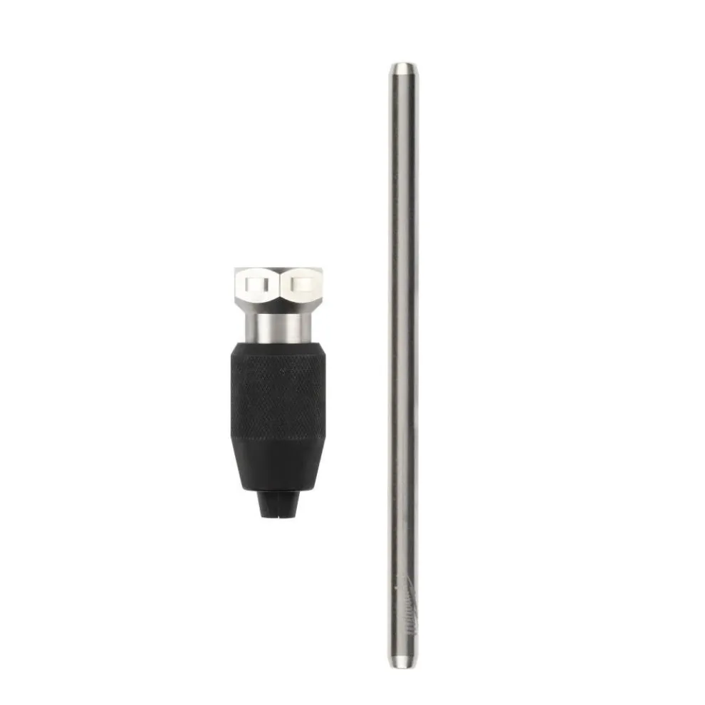 The MILWAUKEE® Tap Collet is designed for versatile tap threading and holds the widest tap range, used for all tap sizes up to 1/2”. With a durable all-metal dual jaw design, the MILWAUKEE® Tap Collet tightly secures taps for smooth, no wobble threading. The forward jaw holds taps 1/4”-1/2” while the recessed jaw secures taps up to 1/4”. The sliding T-Handle bar allows for use in tight or hard-to-reach spaces. The hex-head collet design is also compatible with the MILWAUKEE® Hex-LOK™ 2-in-1 Handle for better leverage and control (sold separately).