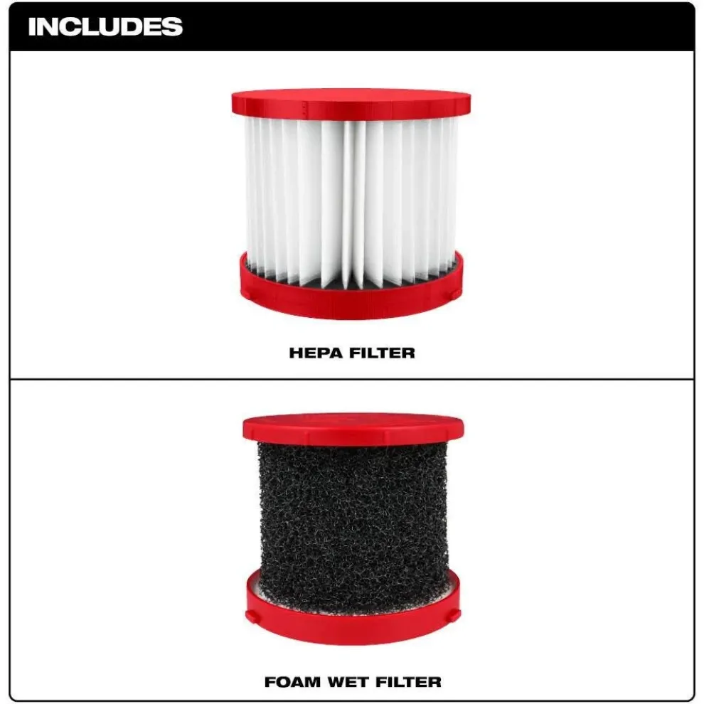 The MILWAUKEE 2 PC HEPA and Foam Wet Filter Kit is a convenient and versatile offering that combines the MILWAUKEE HEPA Filter (49-90-1900) and MILWAUKEE Foam Wet Filter (49-90-2015). Both filters are easy to install and remove with their twist and lock installation feature and can be washed or dry cleaned. The HEPA Filter captures 99.97% of all particles greater than 0.3 microns and is excellent for fine dust pick up. The Foam Wet Filter is optimized for wet pick up applications and allows water to flow through but deflects and stops debris from getting into the motor. Both Milwaukee Filters are compatible with the MILWAUKEE M18 2 Gallon Wet/Dry Vacuum (0880-20), MILWAUKEE M12 FUEL Wet/Dry Vacuum (0960-20), and MILWAUKEE M18 FUEL PACKOUT Wet/Dry Vacuum (0970-20).