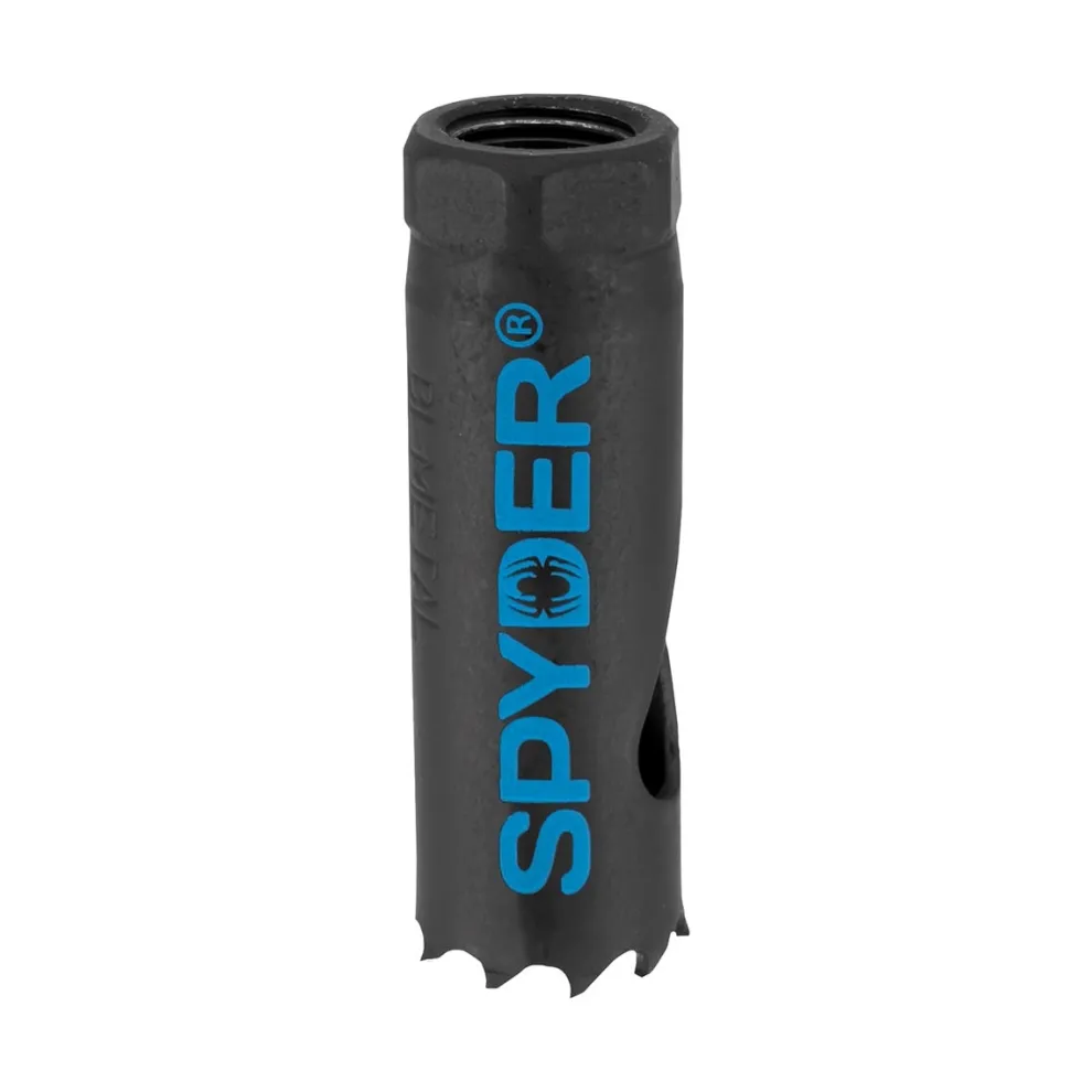 Spyder’s Bi-Metal hole saws feature variable tooth pitch geometry and bi-metal steel that make them the durable choice for making holes in wood with nails, metals and plastics. Use Spyder’s Rapid Core Eject™ arbor system to remove cores without prying—drill hole, press button, pull back the hole saw, and eject the core. Cut at an angle, and use two adapters (second adapter sold separately) on one pilot bit to enlarge existing holes. All Spyder hole saws fit on Spyder Rapid Core Eject™ arbor/pilot bits, and on universal hole saw arbors.