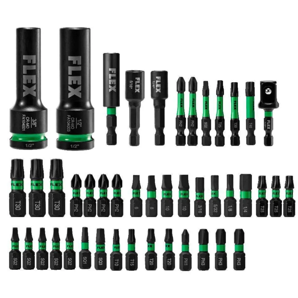Power through the most demanding applications with precision, durability, and control in every bit. This 45-Piece Impact Driver Bit Set is stocked with the most commonly used bit sizes, including a mix of Allen and Slotted bits not found in most impact driver bits sets. All FLEX bits are optimized for unrivaled bit life. Each piece is engineered for optimal impact distribution, so no energy or effort goes to waste. Dominate more applications on the jobsite with the included 1/2″ High-Quality CR-MO Thin Wall Deep Well Sockets. All this comes packed in an IMPACKS storage case for customizable organization and easy accessibility in any case in the STACK PACK™ lineup.