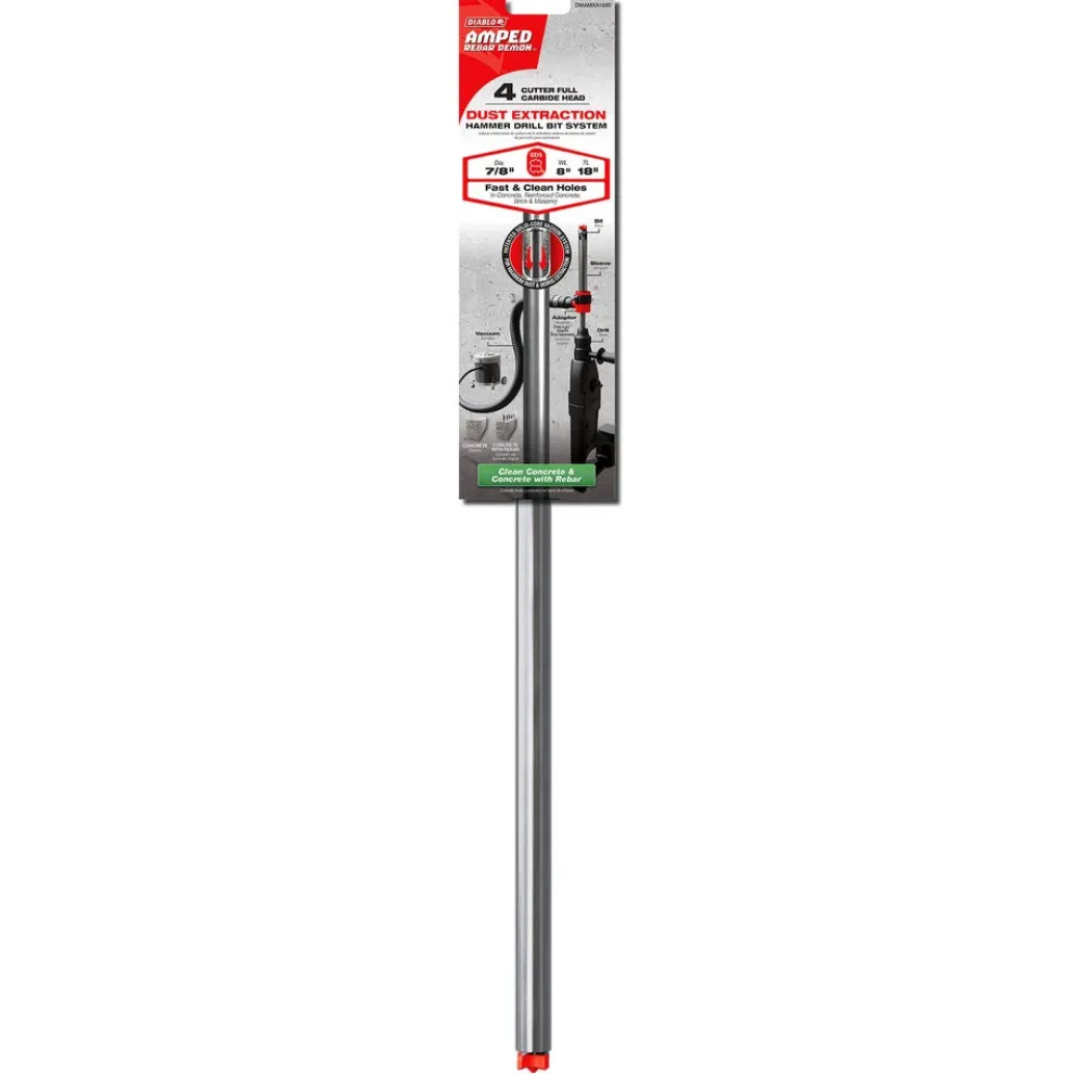 - Compact Snap-Lock Adapter (sold separately, two versions for SDS-Plus and SDS-Max) connects the AMPED Rebar Demon Dust Extraction Hammer drill bit to vacuums for maximum dust and debris extraction and allows you to easy and quickly exchange different drill bit sizes