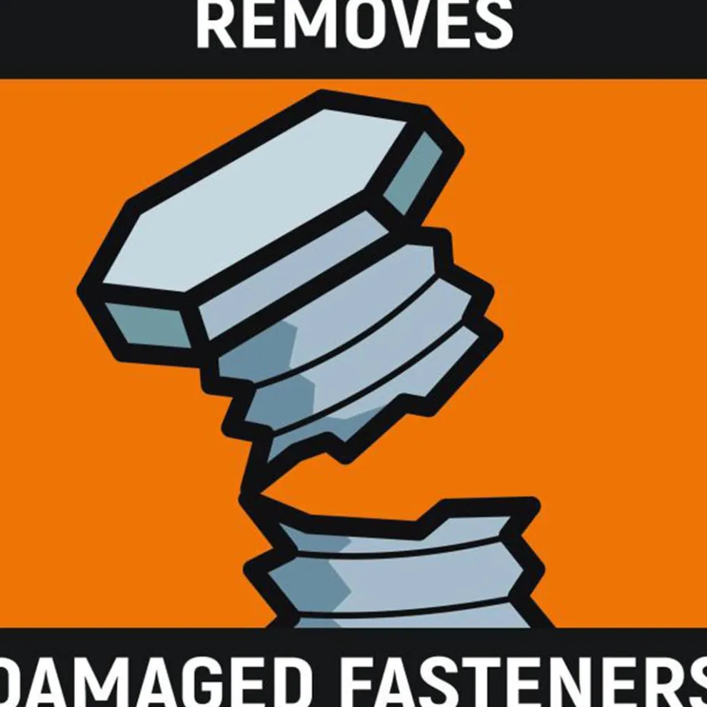 - Bi-directional design loosens or tightens damaged fasteners.