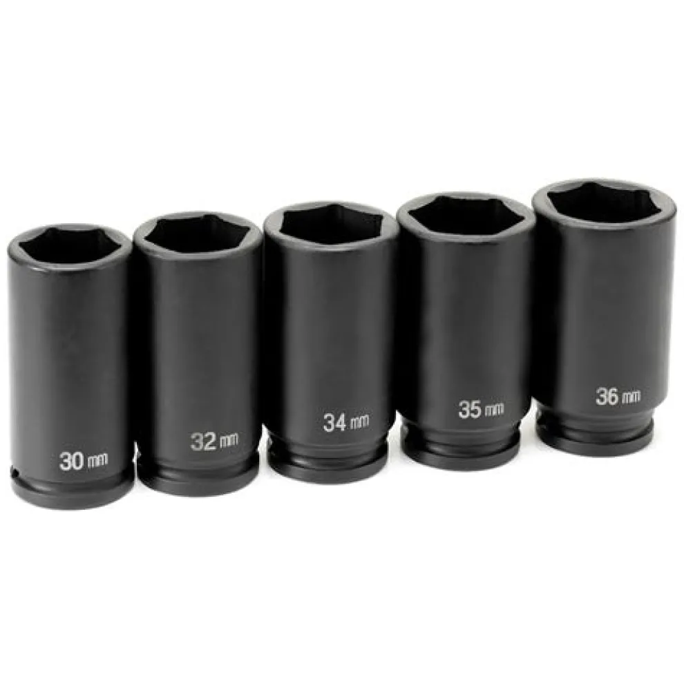 Grey Pneumatic 5 Piece 1/2 Drive Axle Nut Impact Socket Set (Metric) 1705SN