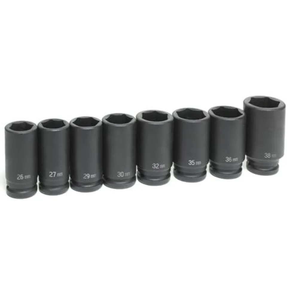 Grey Pneumatic 8 Piece 3/4 Drive 6-Point Deep Length Impact Socket Set (Metric) 8134MD
