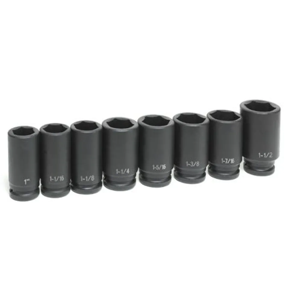 Grey Pneumatic 8 Piece 3/4 Drive 6-Point Deep Length Impact Socket Set (SAE) 8034D