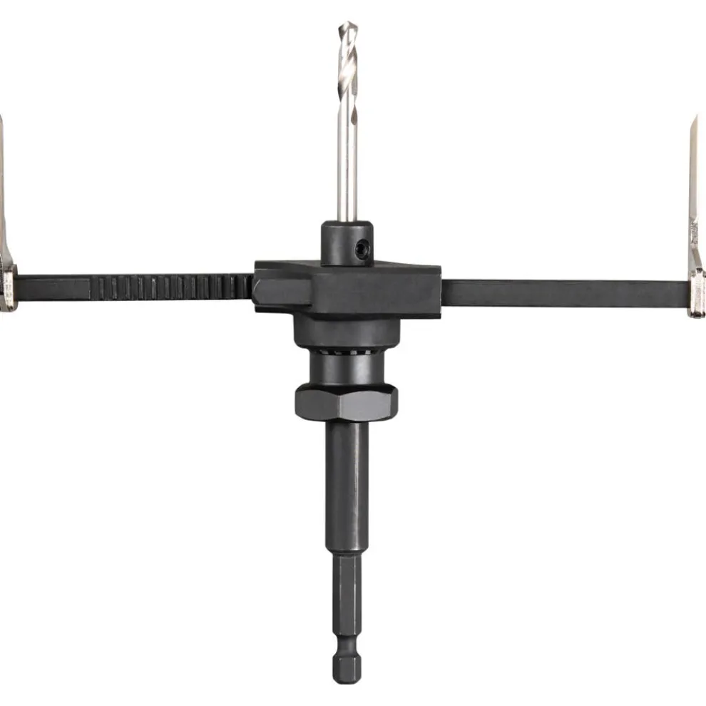 - No additional tools needed to adjust the hole saw; arms dual-adjust for size