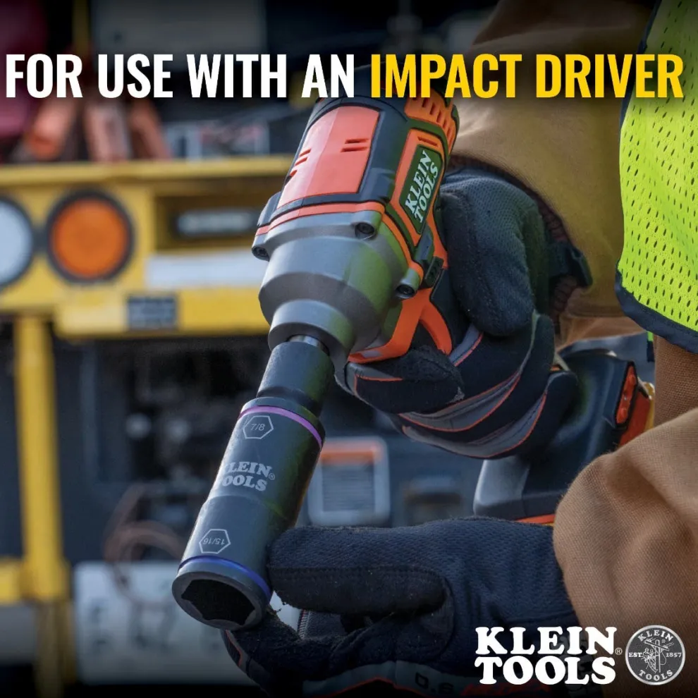 The 7-Piece Flip Impact Socket Set includes ten sizes combined into five sockets and two nested adapters. The two nested adapters allow for dual drive (1/4-Inch, 1/2-Inch) capability. The sockets are designed for use with an impact driver including Klein’s Impact Wrench (Cat. Nos. BAT20CW, BAT20CW1) and Impact Driver (Cat. Nos. BAT20CD, BAT20CD1). Easy-to-use flip feature allows for quick changes between sizes and reduces the number of tools in the tool bag. All sockets and adapters store in a convenient case for easy portability.