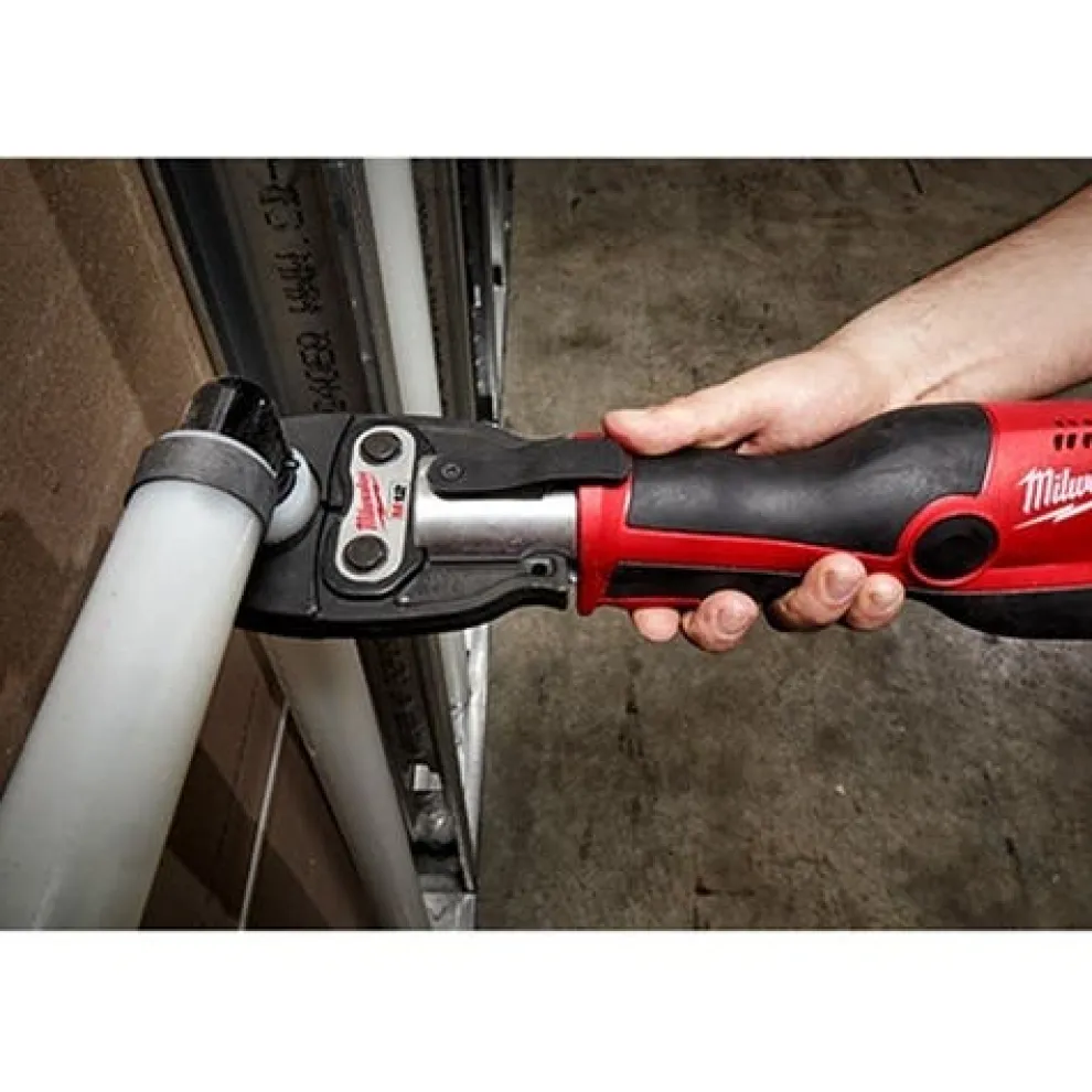 The PEX Crimp Jaws for the M12 FORCE LOGIC Press Tool provide an easy to use solution for PEX crimp installations, eliminating the repetitive strain required with hand tools. With an easy open, in line design, the jaws are optimized for one handed pressing with the M12 FORCE LOGIC Press Tool – Milwaukee’s smallest, most intelligent press tool. These PEX crimp jaws offer the highest confidence for quality connections, as the spring-loaded opening grips the ring for precise alignment to the fitting, and a green light on the press tool indicates a completed crimp. Compatible with F1807 connections.