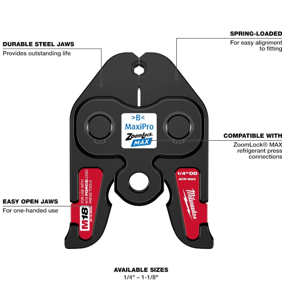 - (1) 1-1/8″ ZoomLock MAX Press Jaw for M18 FORCE LOGIC Press Tools (49-16-2657Z)