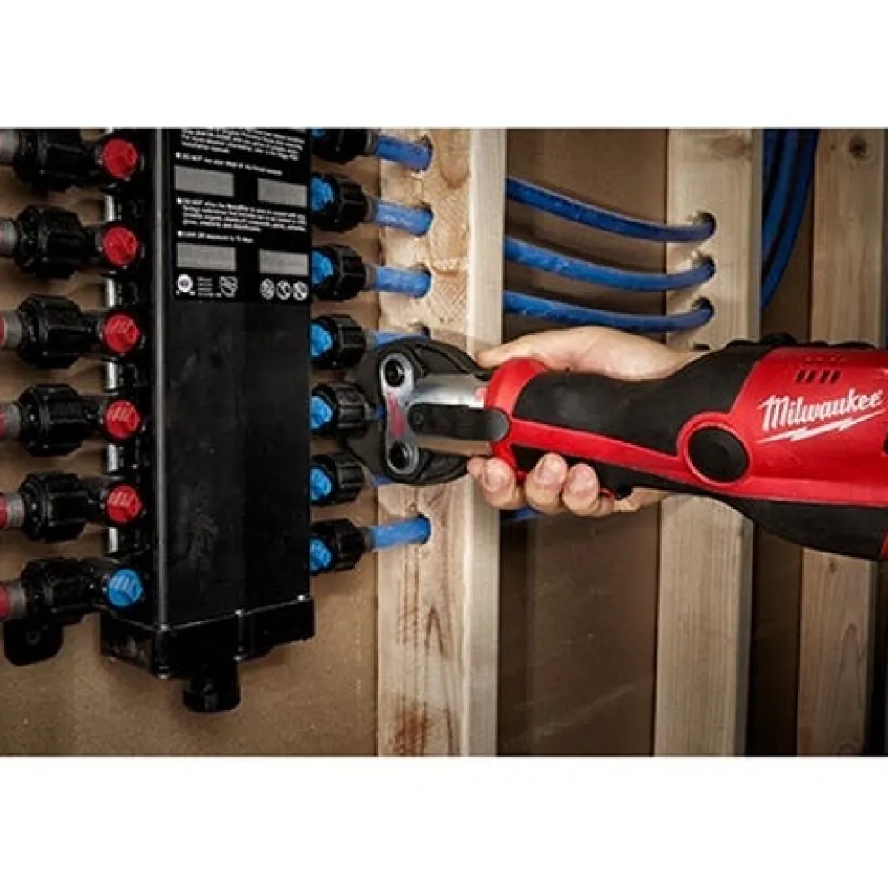 The PEX Crimp Jaws for the M12 FORCE LOGIC Press Tool provide an easy to use solution for PEX crimp installations, eliminating the repetitive strain required with hand tools. With an easy open, in line design, the jaws are optimized for one handed pressing with the M12 FORCE LOGIC Press Tool – Milwaukee’s smallest, most intelligent press tool. These PEX crimp jaws offer the highest confidence for quality connections, as the spring-loaded opening grips the ring for precise alignment to the fitting, and a green light on the press tool indicates a completed crimp. Compatible with F1807 & F2159 connections.