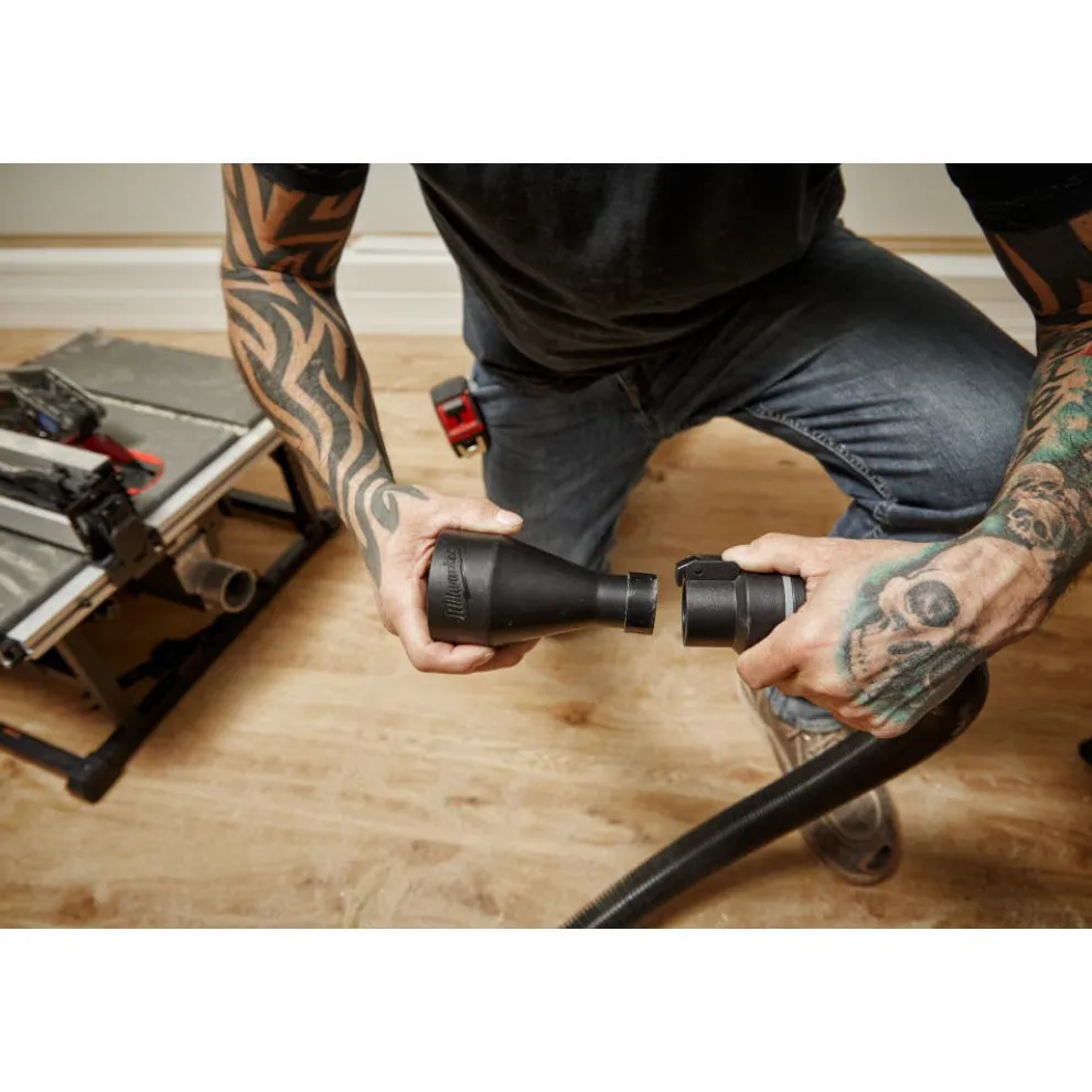 - Hose Clip Adapter screws onto the end of the hose and connects directly to MILWAUKEE power tools or dust shrouds with a clip interface and the other two adapters included in the kit
