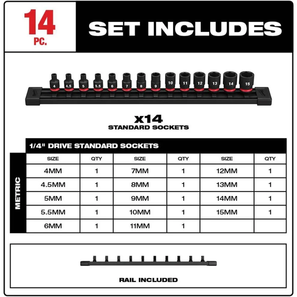 14 Pc. Shockwave Impact Duty 1/4″ Drive Metric Standard 6 Point Socket Set 49-66-7002