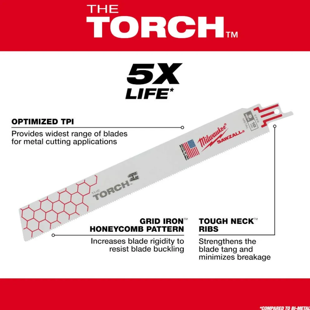 - Includes (19) TORCH SAWZALL blades for the toughest metal cutting applications
