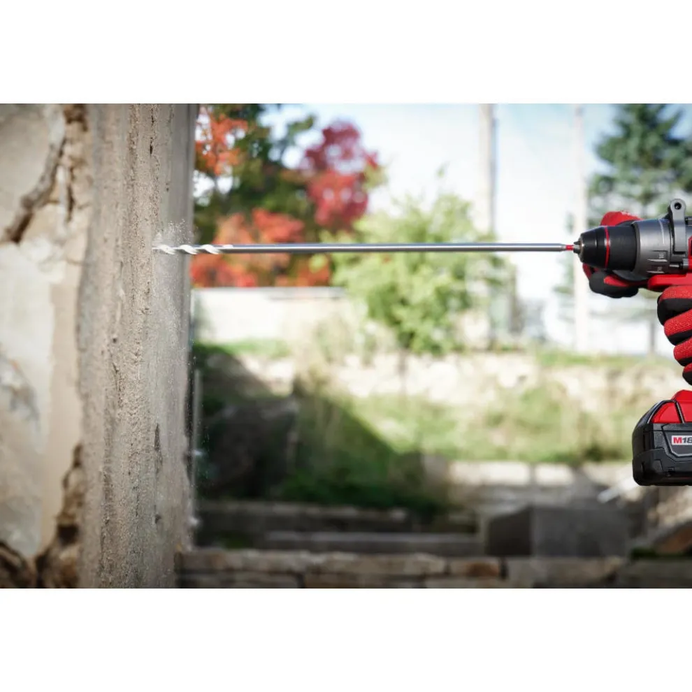 The MILWAUKEE SHOCKWAVE Impact Duty Carbide Multi-Material Bellhanger Bits are the most versatile bellhanger bits, designed to tackle materials such as brick, block, concrete, steel, aluminum, ceramic tile, backerboard, wood, PVC, stucco and drywall for small wire system installation. Designed with a hole in the tip for cable & wire pulling applications when installing computer, security, phone, and cable systems. These installer bits, standing at 18″ in length, provide extra reach for complete through-hole applications. The bits feature an aggressive multi-grind carbide tip, which delivers up to 10x longer life in stacked materials and up to 85% faster drilling speeds in metal. Equipped with a 1/4″ hex shank, these general-purpose bits are compatible with impacts, drill/drivers, and hammer drills. MILWAUKEE SHOCKWAVE Impact Duty Multi-Material Bellhanger Bits provide the ideal all-in-one solution for wire-pulling applications.