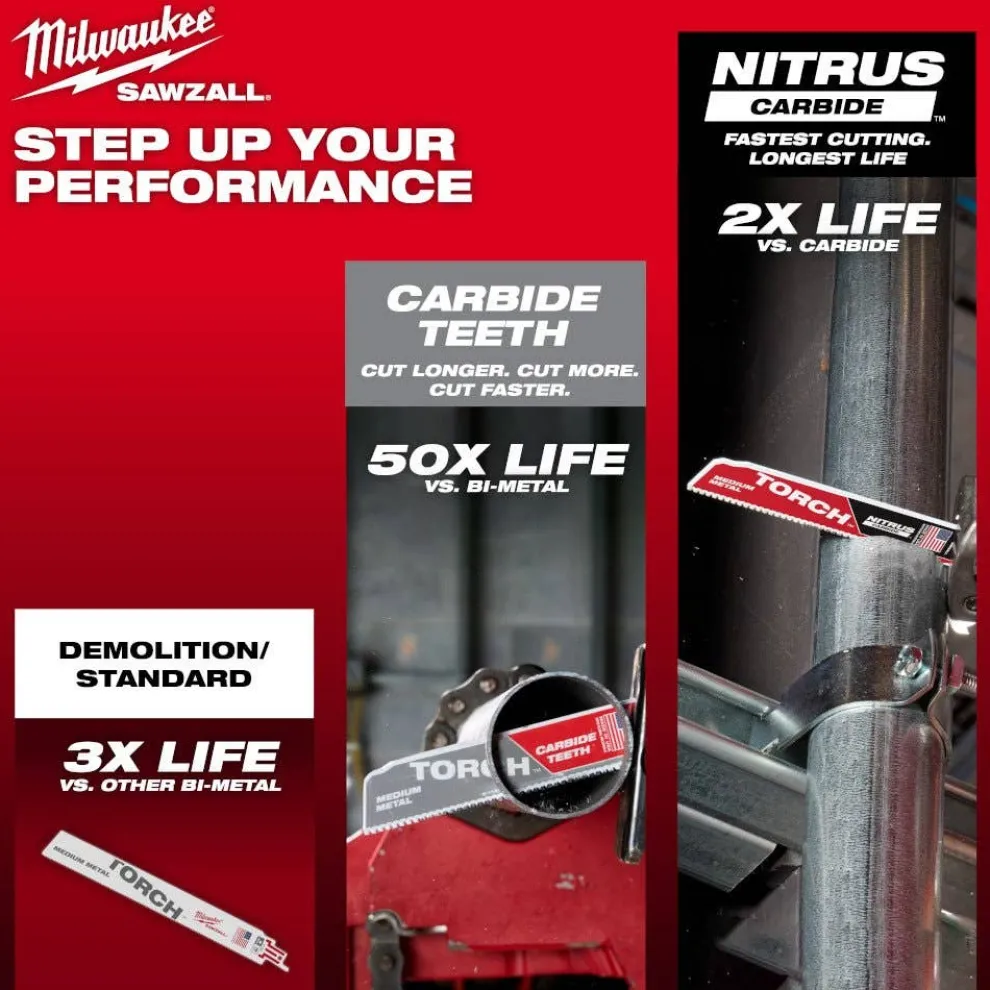 - Designed with Carbide Teeth for longer life vs. bi-metal blades in medium Metal applications
