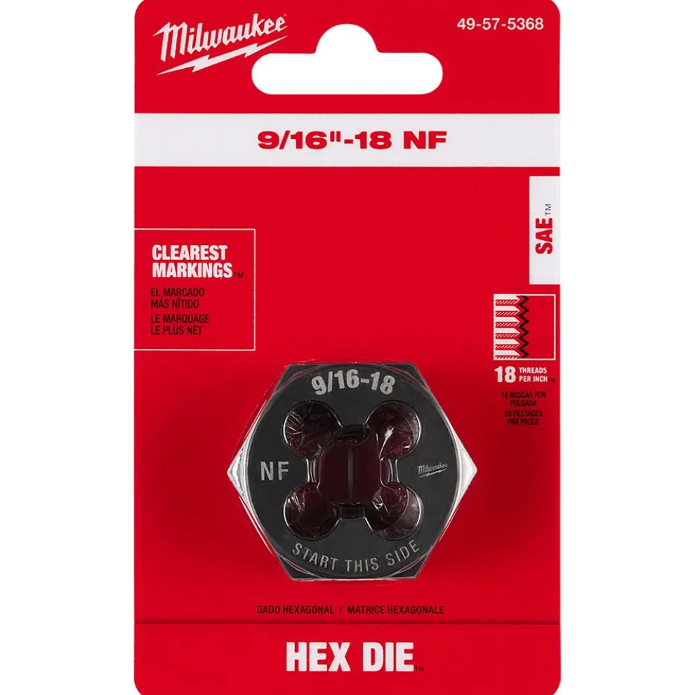 The MILWAUKEE® 2-1/6” Hex Threading Dies are precision machined for creating or repairing clean, accurate (external) threads. The Hex Dies feature long-lasting laser-etched sizing for the clearest markings and include a protective Black Oxide coating for corrosion resistance. The large 2-1/6” Hex shape is compatible with 2-1/6” Die stocks or for use with wrenches. Engineered for durability, the MILWAUKEE® 2-1/6” Hex Dies are designed for cutting threads in the most common metal applications including brass, aluminum, mild steel, and more. For best results, use Hex Dies with cutting fluid.