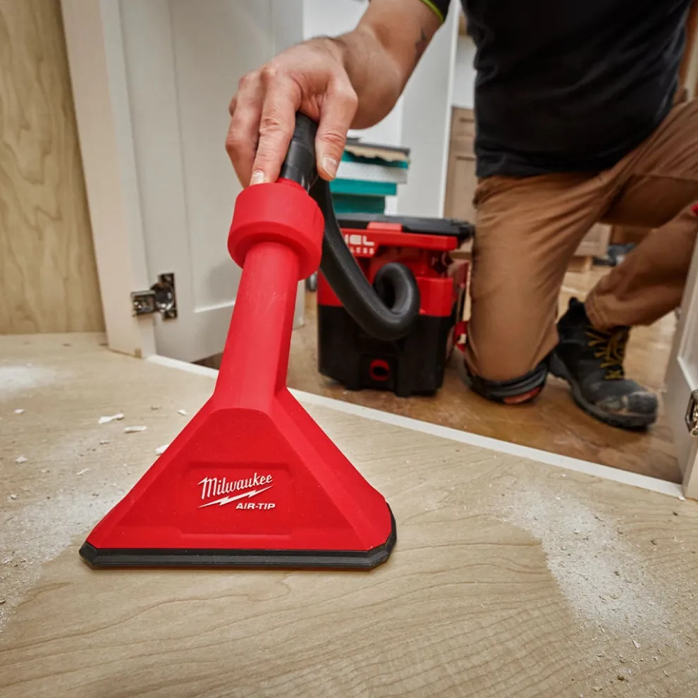 The MILWAUKEE AIR-TIP Non-Marring Utility Nozzle Kit has non-marring edges to protect surfaces from getting marred when cleaning. A specialized resin allows each tip to be used on finished surfaces without marking up the area. The kit includes a Crevice Tool and Utility Nozzle, which both have non-marring edges indicated by the black surface. The AIR-TIP Non-Marring Utility Nozzle Kit is compatible with other wet/dry vacuum brands with 1-1/4″, 1-7/8″, 2-1/2″ diameters, and is part of the AIR-TIP family of Trade Focused Vacuum Accessories.