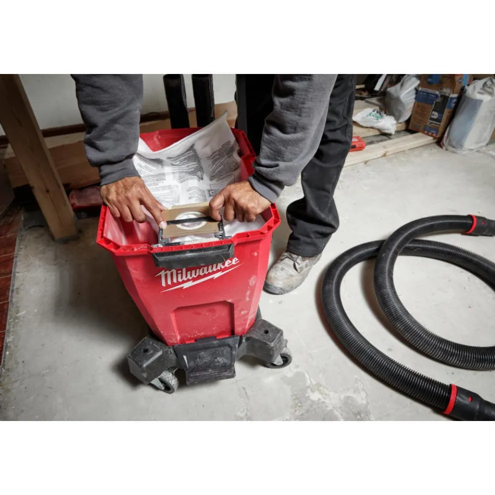 The MILWAUKEE Fleece Dust Bags (5PK) are compatible with the Milwaukee M18 FUEL 12 Gallon Wet/Dry Vacuum (0930). With 98.5% filter efficiency, these disposable fleece dust bags are ideal for fine dust collection. The vacuum cleaner dust bags are fully enclosed and act as a pre-filter to prolong filter life and are easy to dispose of with the pull tab to prevent dust from escaping. This kit includes five Fleece Dust Bags.