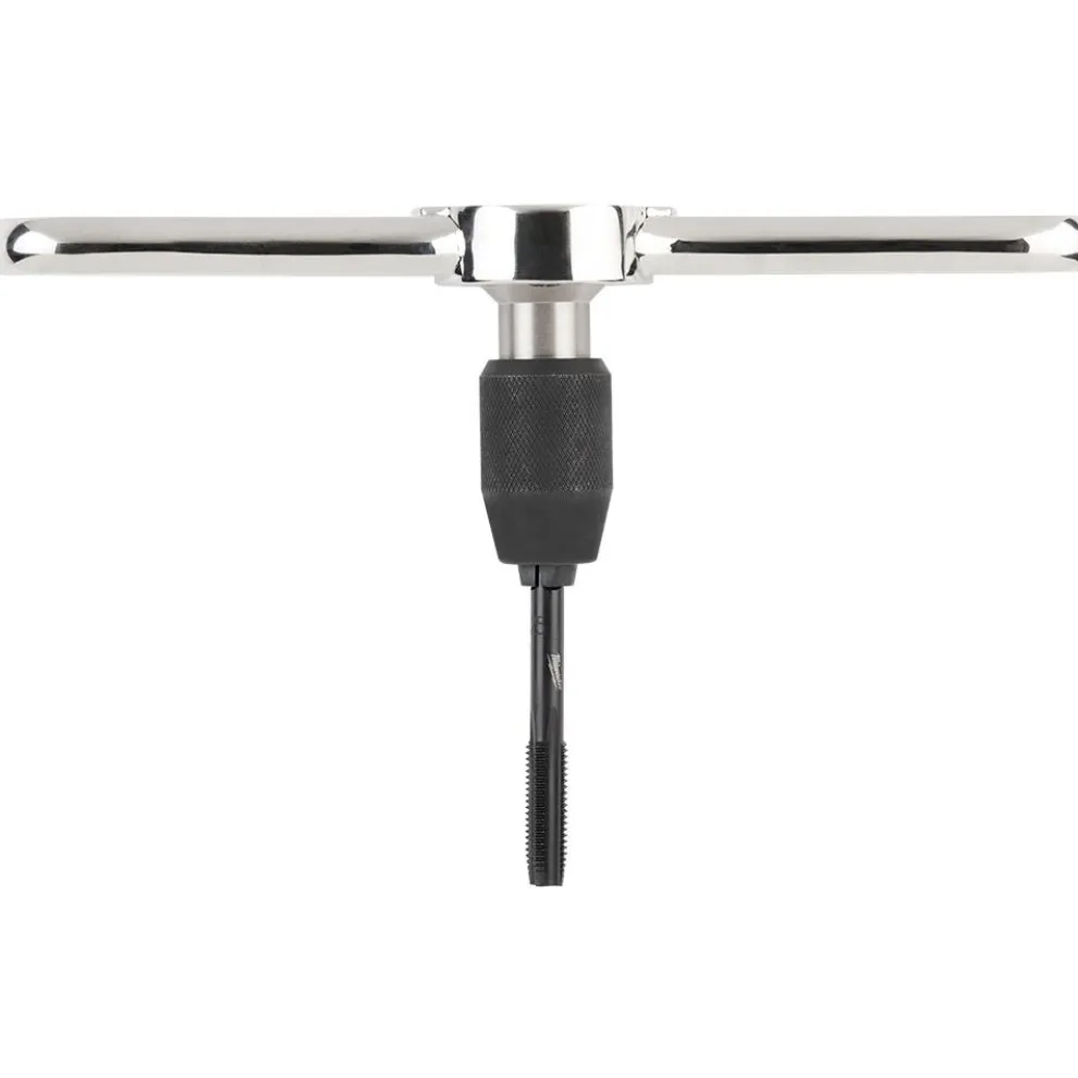 - The included T-handle bar slides in or out of the Tap Collet allowing for tight space threading