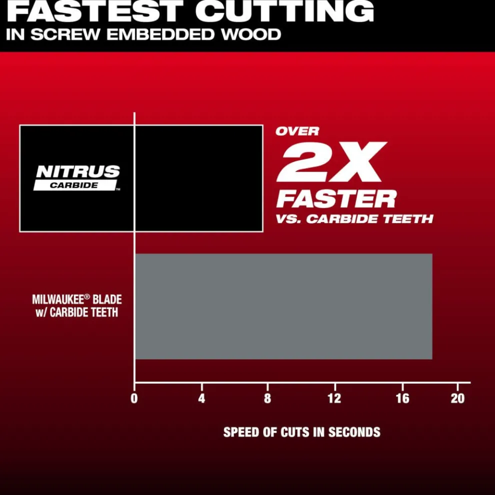 - NITRUS CARBIDE blades provide up to 2X more cuts vs Carbide Teeth