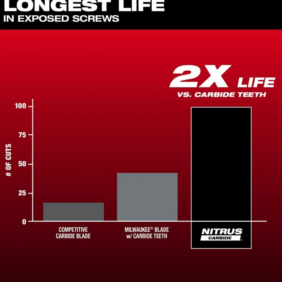 - NITRUS CARBIDE blades provide up to 2X more cuts vs Carbide Teeth